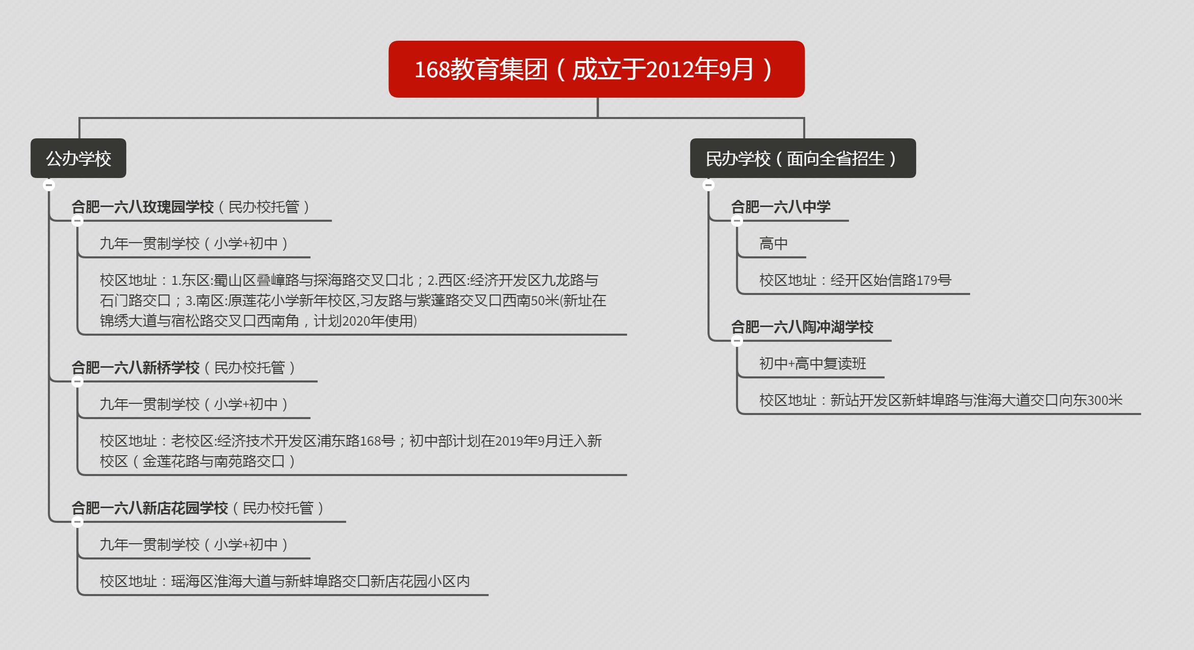 我们今天主要介绍的就是合肥168集团下辖的几所学校,其中属于公立学校的有168玫瑰园、168新桥和168新店花园学校,这三所学校都是有学区的。