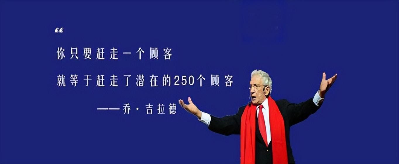 250定律是由美国著名推销员吉拉德在商战中总结出的,它是指:每一位顾客身后,大体有250名亲朋好友。如果您赢得了一位顾客的好感,就意味着赢得了250个人的好感;反之,如果你得罪了一名顾客,也就意味着得罪了250名顾客。
