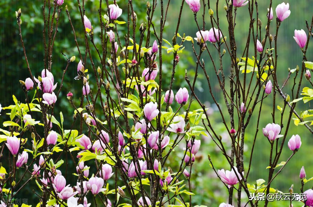 况有短墙银杏雨,更兼高阁玉兰风。画眉闲了画芙蓉。