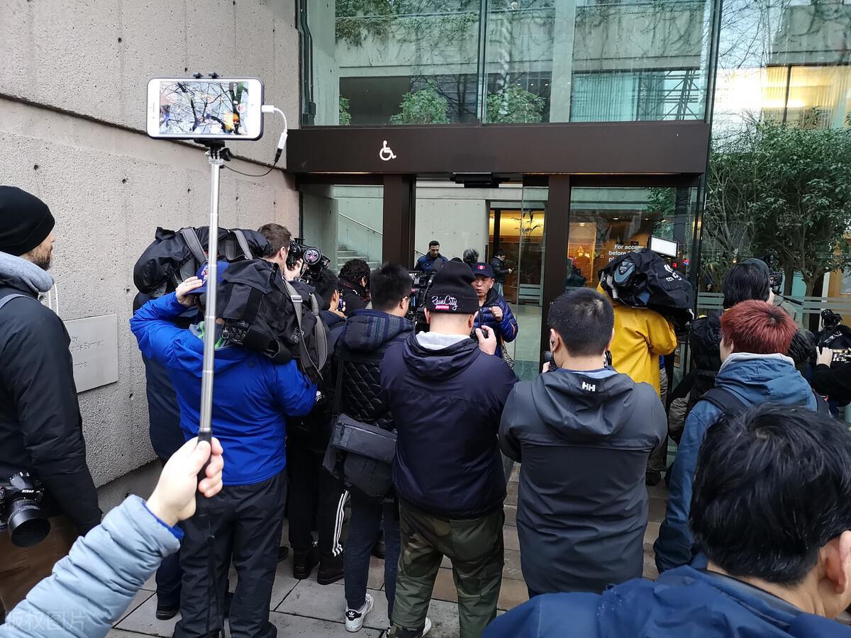 听证会,众多记者法院门口等候