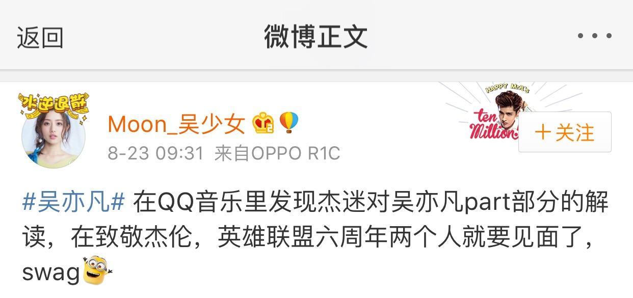 9.3“英雄联盟六周年盛典”两人都将作为演出嘉宾出席活动了,不知道会不会有什么新的合作呢?说不定会碰撞出新的嘻哈swag呢!这个夏天,每个你和吴同学一起嘻哈起来~