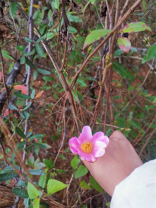 每年的春节前夕,山茶花就会开花,虽然没有香味,但是却给山谷增添不少色彩。