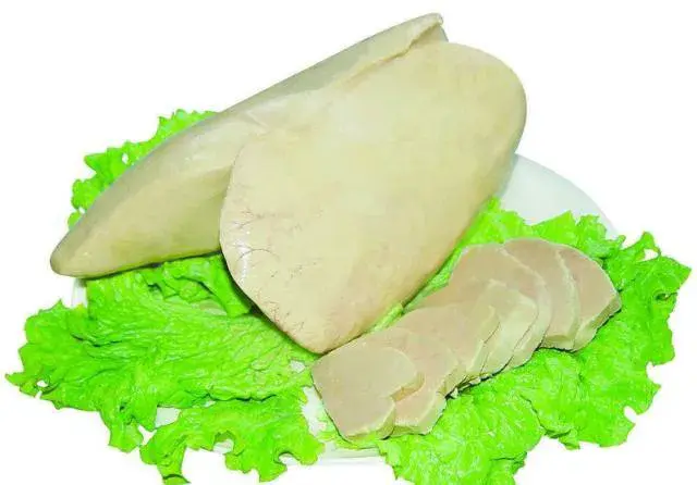 2将蒸好后的鹅肝最后在红酒里泡制8小时后,加入吉利丁片,用料理机打成鹅肝泥。