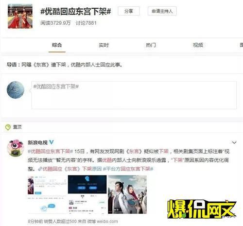 据悉,2019年初,网文改编剧《东宫》正式播出,由男女主角组成的“忘川CP”一经开播就爆红网络,“东宫女孩”(该剧迷)成为网络热词。可随之播出不久,该剧突遭无预警下架,平台方的回应为“内容优化调整”。
