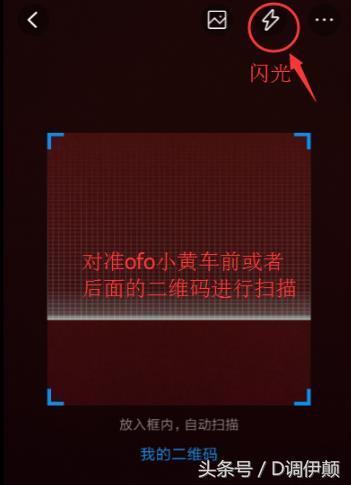 2.对准小黄车的车座下或者车前的二维码进行扫描: