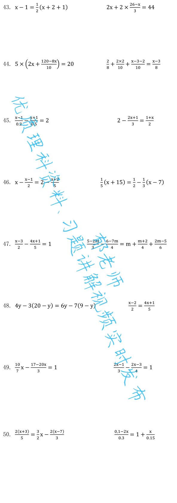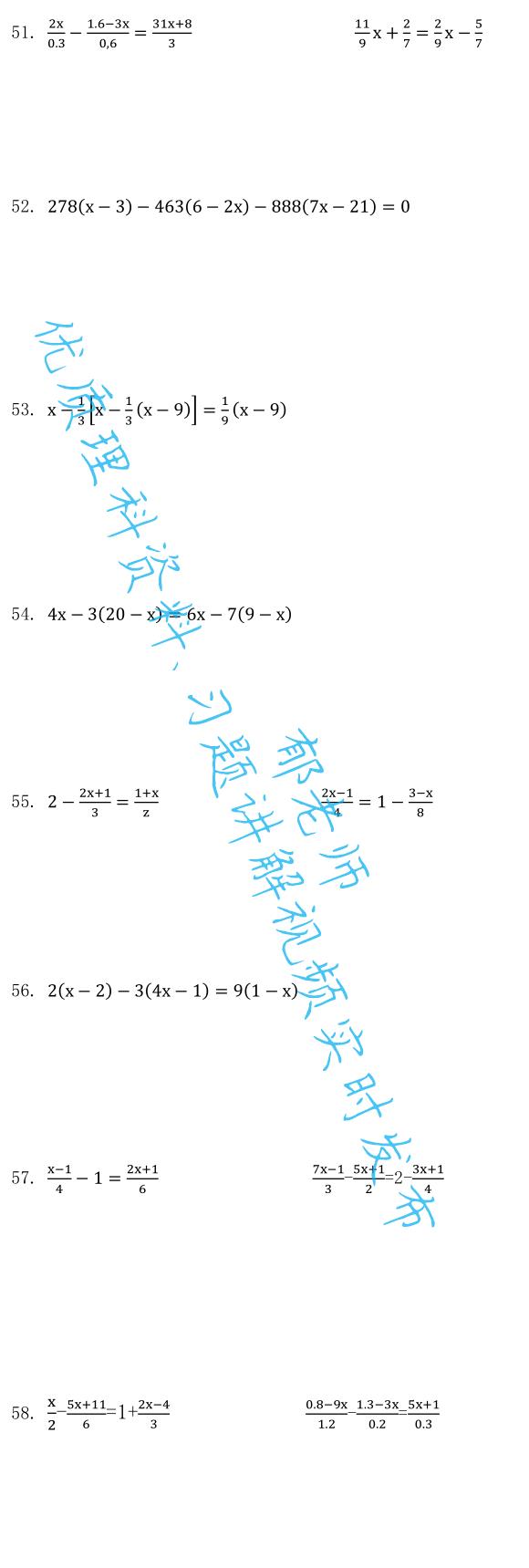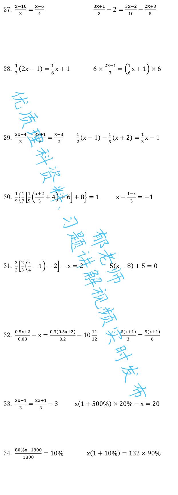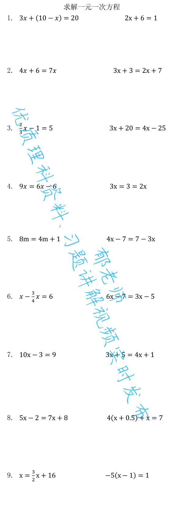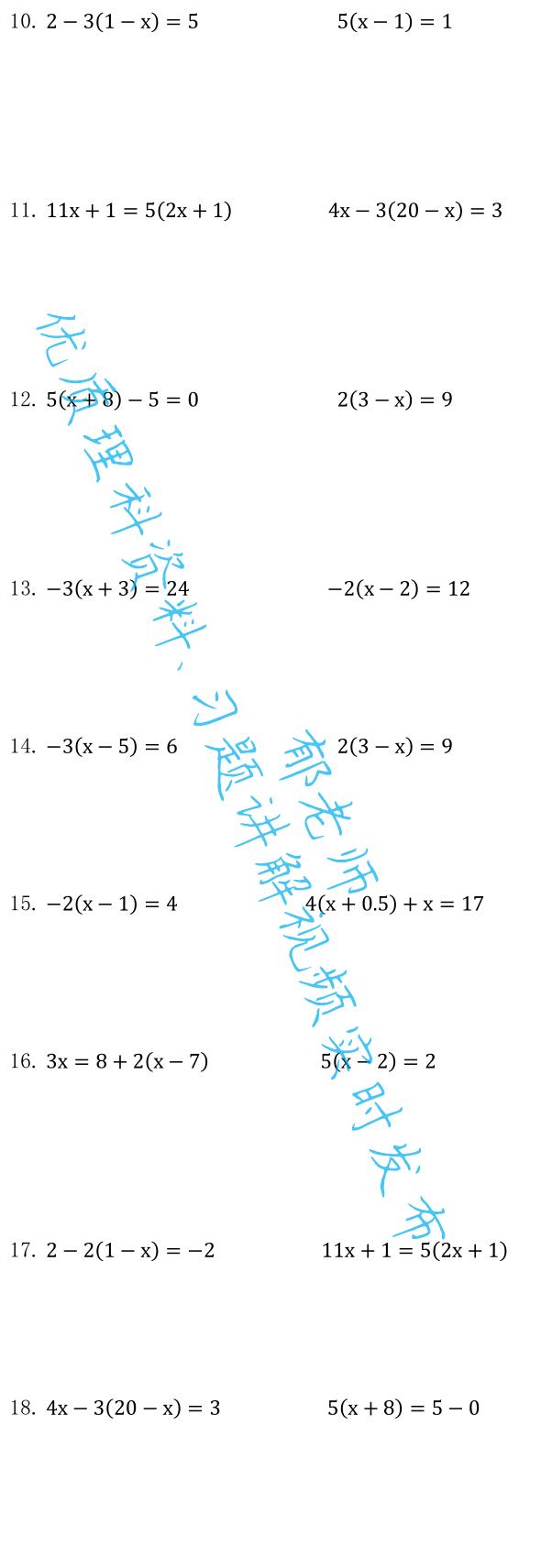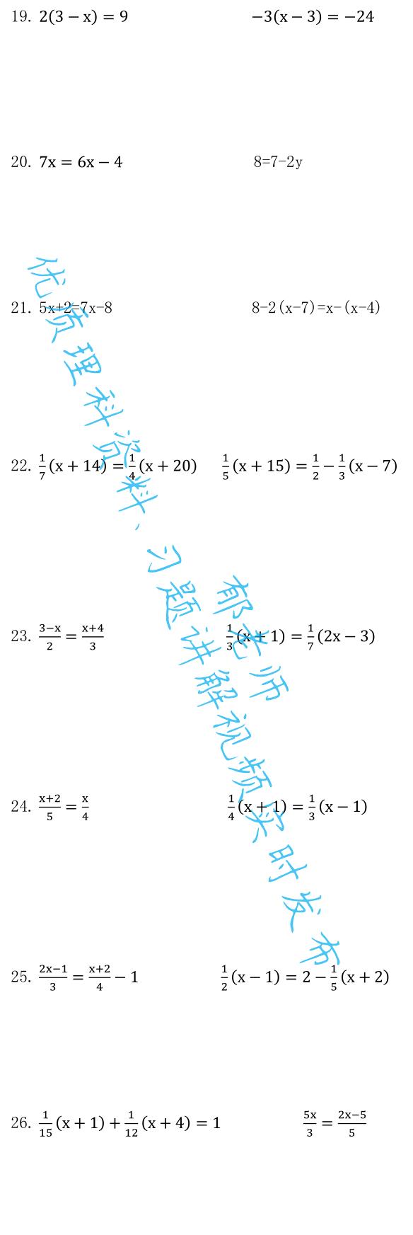 如需获取电子版习题,请关注后私信:求解一元一次方程