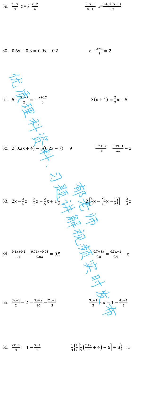 100多道一元一次方程求解题 赶快收藏吧