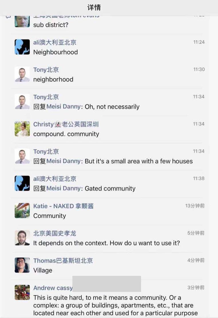 好了,我继续调查生活在中国的外国友人们关于“小区”如何正确翻译,他们也许比较有发言权。