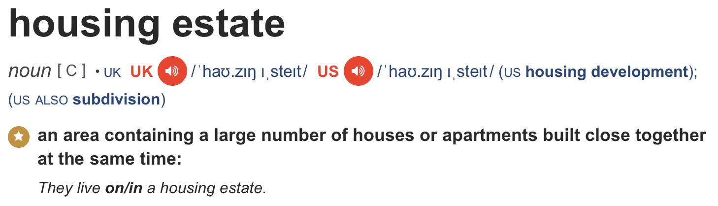 显然housing estate也是一个不常用或者说不是日常生活的语言,所以翻译不准确。