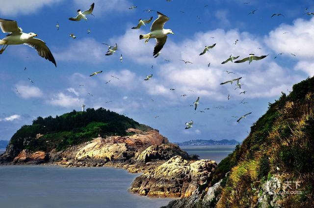 三.南北鸟岛推荐理由:洞头鸟岛,无人居住岛,由于气候条件适宜,并有充足海鲜食料等,给一些鸟类的栖息,生存,繁殖提供了良好的自然环境,因此长年有群鸟寄居翱翔,繁衍生 殖. 在这两岛上大量的有海鸥,白鹭,白鹳,海燕,赤嘴鹭鸶等.一般为四至九月间生活在这些岛屿上,每年繁殖二至四次.以端午节前后为高峰期,仅北岛上就 有上万只鸥鸟飞翔,群飞之景极为壮观,沙滩上遍地是鸟蛋!网友点评: