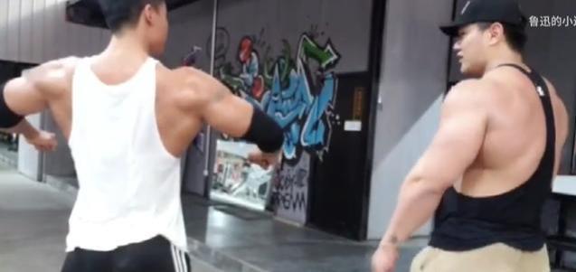 两人的身高都在1米9左右,而且也有着差不多的骨架,但是围度就差的很多了,看到孙良轩的肩臂、背、胸、斜方,都要比黑人毅大一圈。