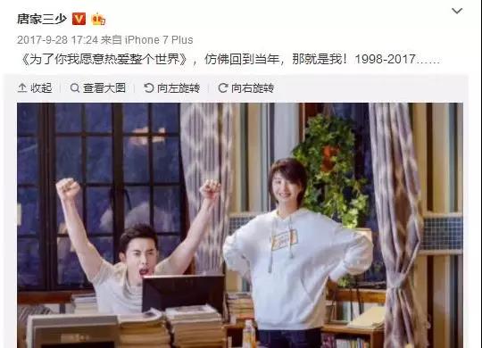 2016年,唐家三少推出了《为了你,我愿意热爱整个世界》,《为了你,我愿意热爱整个世界》讲述了唐家三少与妻子16年相依相伴的感人爱情故事,以及从失业青年到年收过亿的的真实逆袭故事。