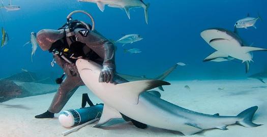 加勒比海巴哈马群岛附近的海湾,潜水爱好者经常看到一副奇怪的景象:一名女子穿着潜水服沉到海床上面,她的周围就会聚集起了一群海中霸王——加勒比礁鲨。她不仅没吓破胆,反而开心地伸出手撸鲨鱼,鲨鱼也像自家宠物一般任她抚摸,丝毫没有攻击意图。