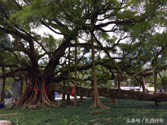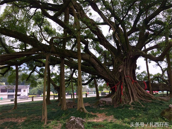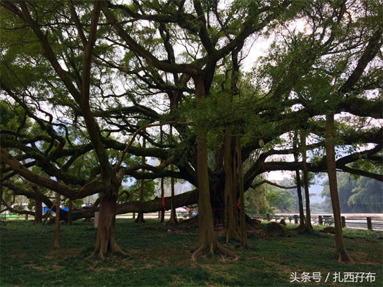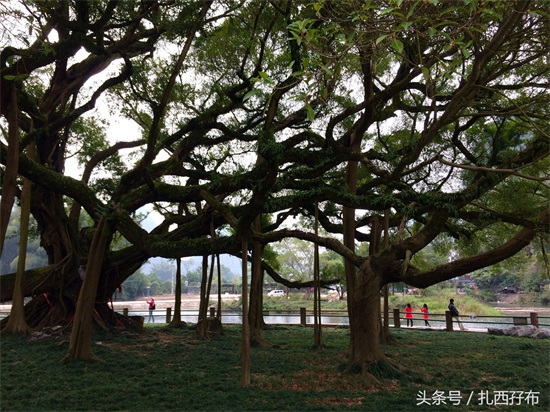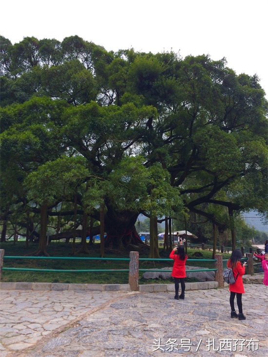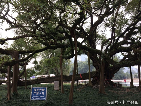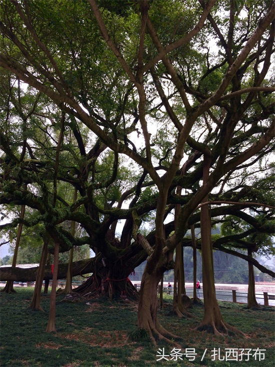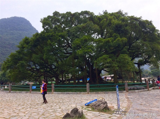 阳朔大榕树位于城南高田乡的穿岩村,树高17米,树围7米,树龄高达1400年,伸展的树冠占地2亩如一把撑开的巨伞,靠许多滕根支撑在地面。大榕树枝繁叶茂,盘根错节,是难得一见的奇树。