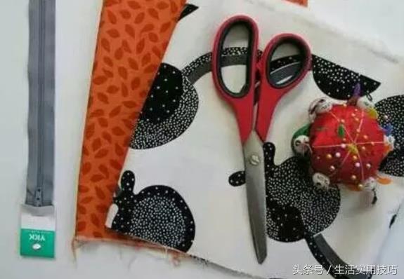 然后将拉链放在里布和面子布的中间缝制好。如图: