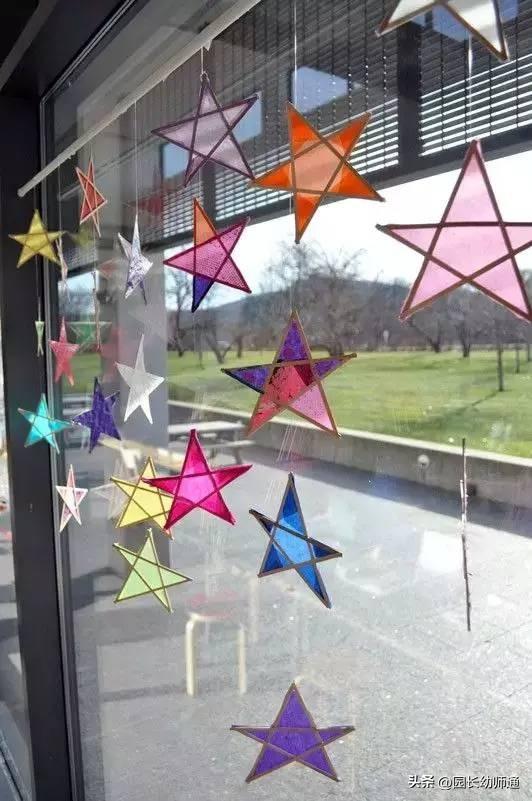 准备细雪糕棍、各类半透明的彩纸、胶水就可以。