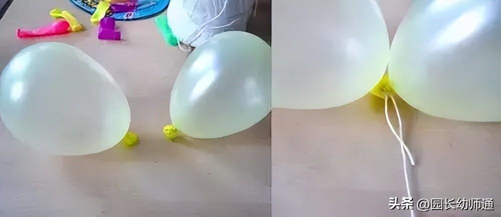 步骤三:把他们吹鼓后打结,然后用毛线把开口处用毛线绑在一起。