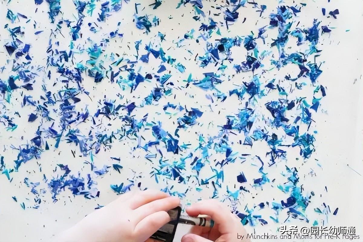 下面铺上蜡纸(建议油画棒使用深蓝浅蓝等多种同色系颜色,以便让颜色更加丰富)
