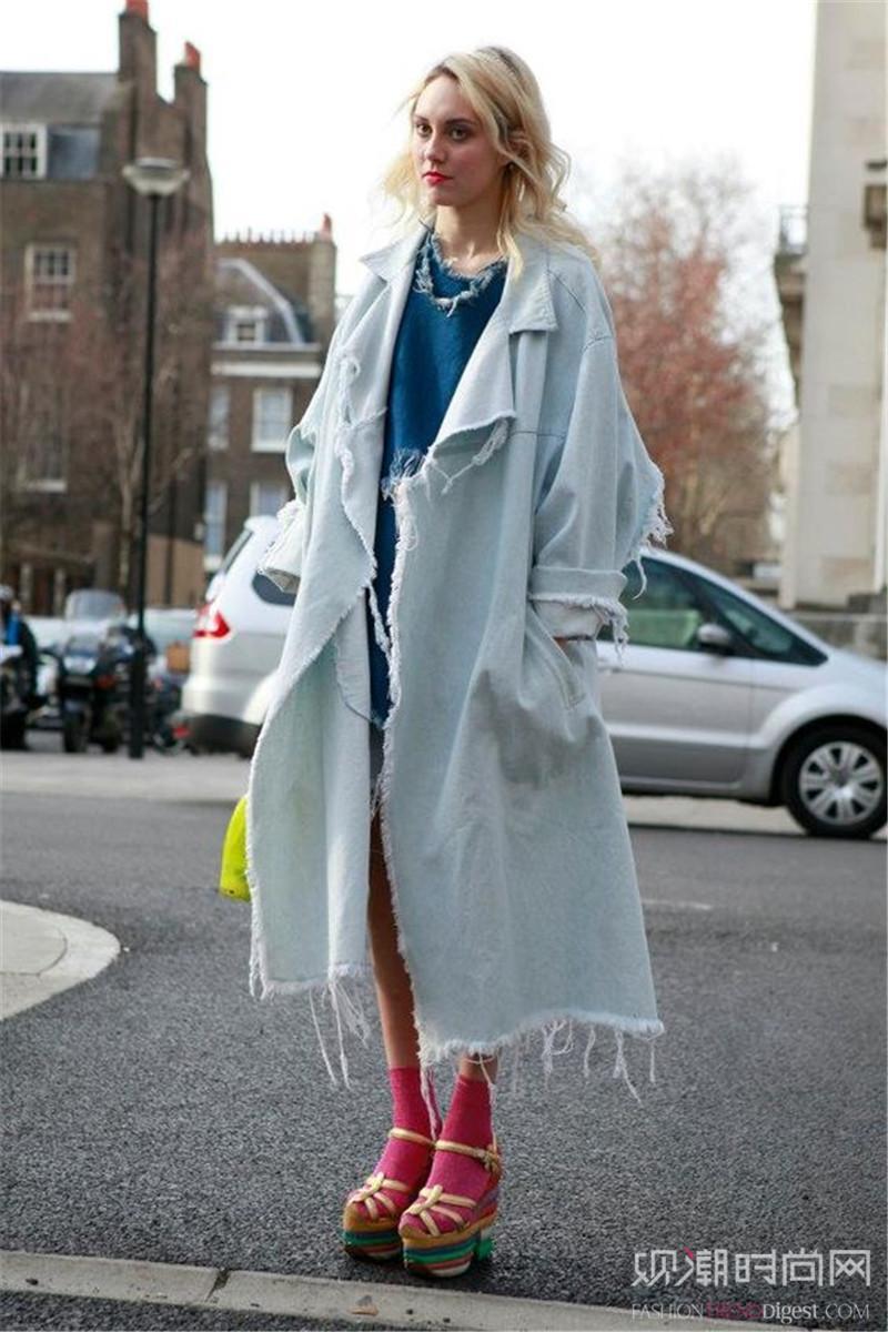 浅灰色风衣内搭蓝色也是不错的选择,领口处裁切设计为衣着风格增加随性自由感,冲破普通衣着的束缚,打造出风格鲜明的高级质感。