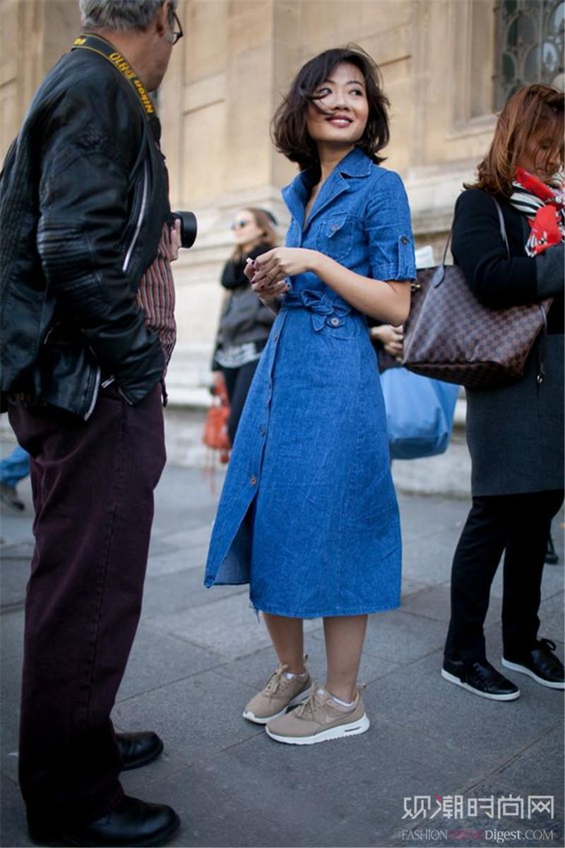 牛仔蓝色连衣裙轻松用一件单品穿出优雅魅力的气场。相比其他衣着的单品搭配更有着简约随性的大气感。