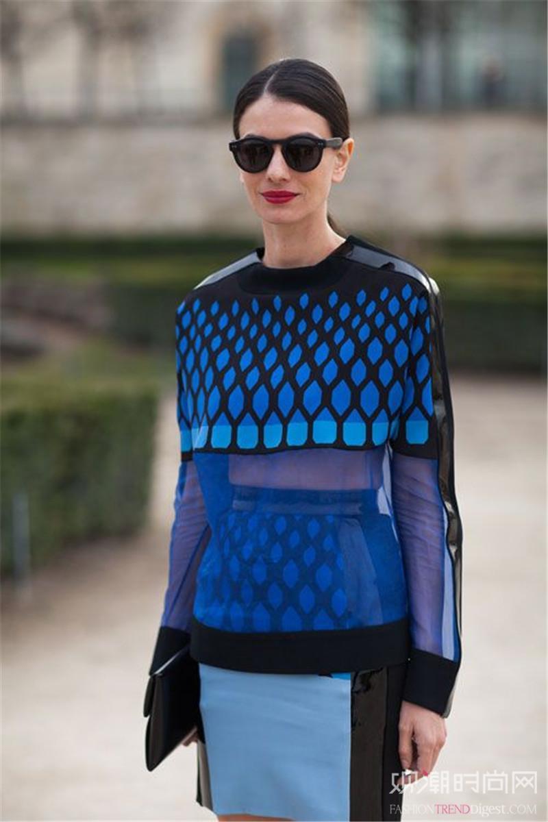 蓝色和黑色渐变的衣着单品显得蓝色系更加纯澈有张力,一件单品即可轻松穿出时尚气质。