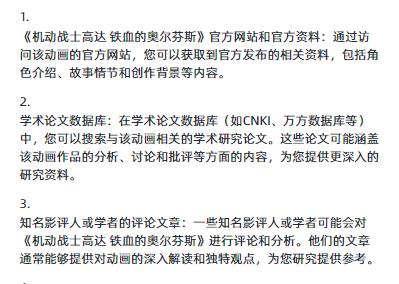 综上所述,通过对《机动战士高达 铁血的奥尔芬斯》的研究,我们不仅更好地理解了这一作品的内涵和意义,也获得了对战争、人性、科技和社会的深刻思考。希望本论文能够为科幻动画研究提供有益的借鉴和启示,并促使更多的讨论者和观众深入探索这个引人思考的领域。