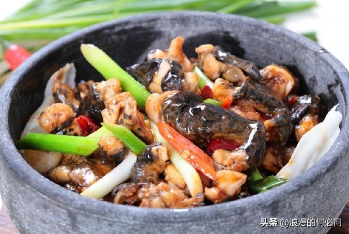 清蒸石鸡,应该是只能在徽州吃得到吧。石鸡又称之为石蛙,生活在徽州的深山峡谷中,徽州人捕到石鸡后,先剥去其外皮,清除内脏、头、脚,切成四块,加入火腿、香菇、冰糖、甜米酒、姜、熟猪油、鸡汤,盖碗清蒸,原汁原味,汤清见底,魅力十足。