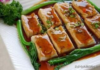 凤阳瓢豆腐,是将猪腿肉剁碎,加盐、姜末、虾仁拌成馅料,再将嫩豆腐用热水烫硬,在中间挖一个凹洞,填入馅料,然后裹以用蛋清、绿豆粉拌成的粉浆,入锅油炸。等炸到外酥里嫩时,便可夹起硬豆腐,再浇上甜甜酸酸的薄芡吃食了。这其实是道很平民化的菜色,要不是因为朱元璋爱吃,估计也不会成为名菜吧。