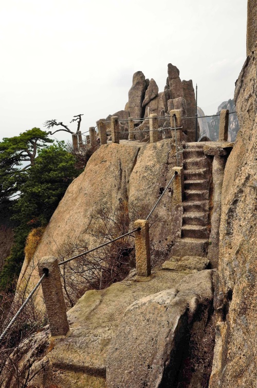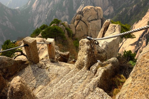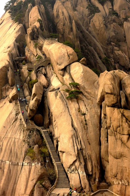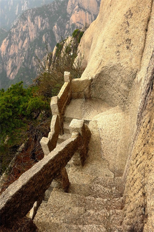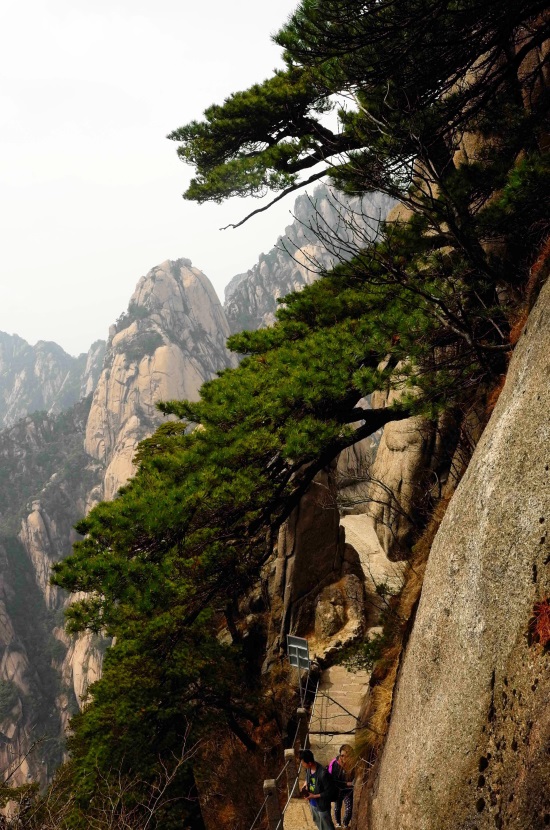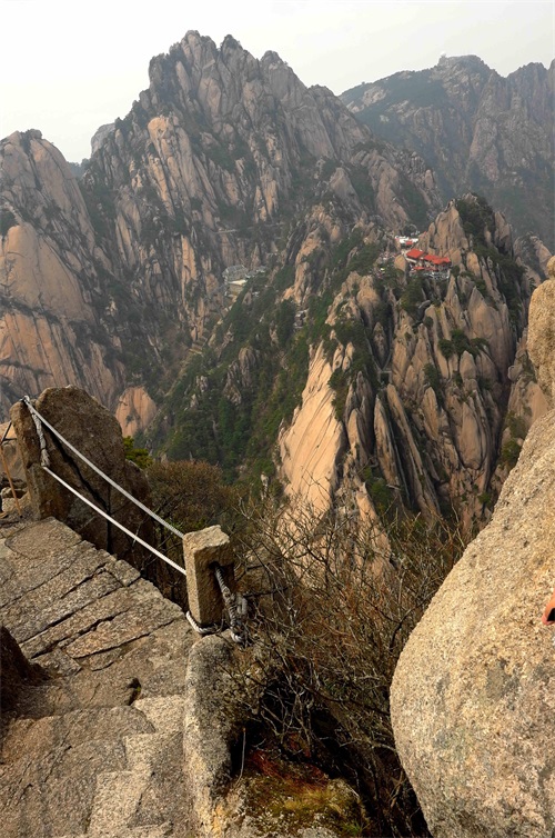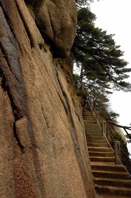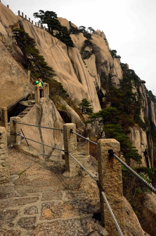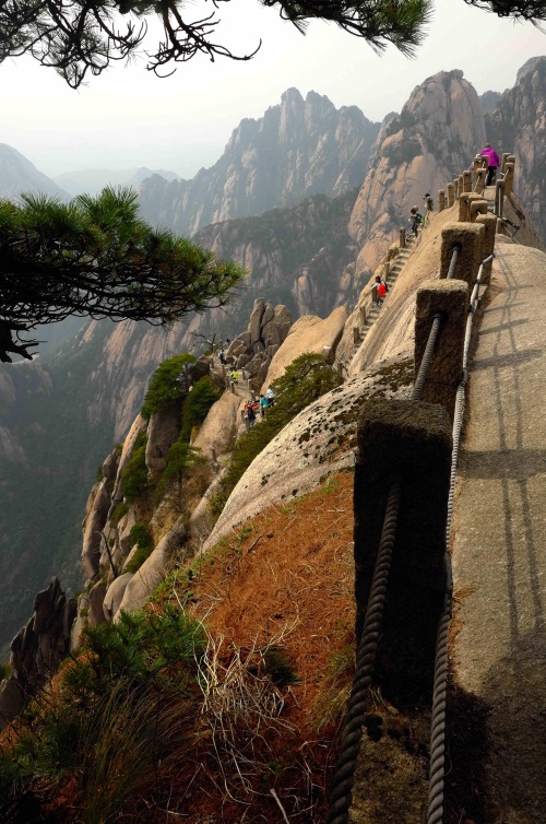 又到鲫鱼背呀,这可以说是黄山第一险路,昨天过这儿在雾里,今天可是清清楚楚地看见其险峻。