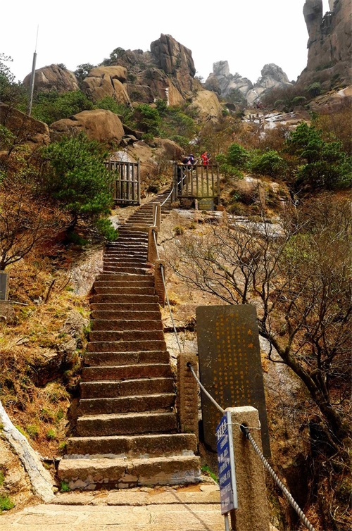 下到天都和玉屏峰之间的老道口,前面就是上天都的路啦,看上去好陡。可经过昨天走天都新路,这儿有点小巫见大巫,但还是有难度。