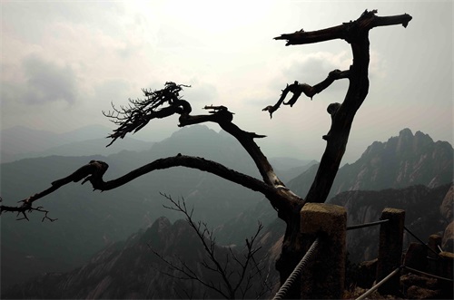 一棵枯树,7-80年代,天都峰曾经有过一次火灾,这是当年留下来的。