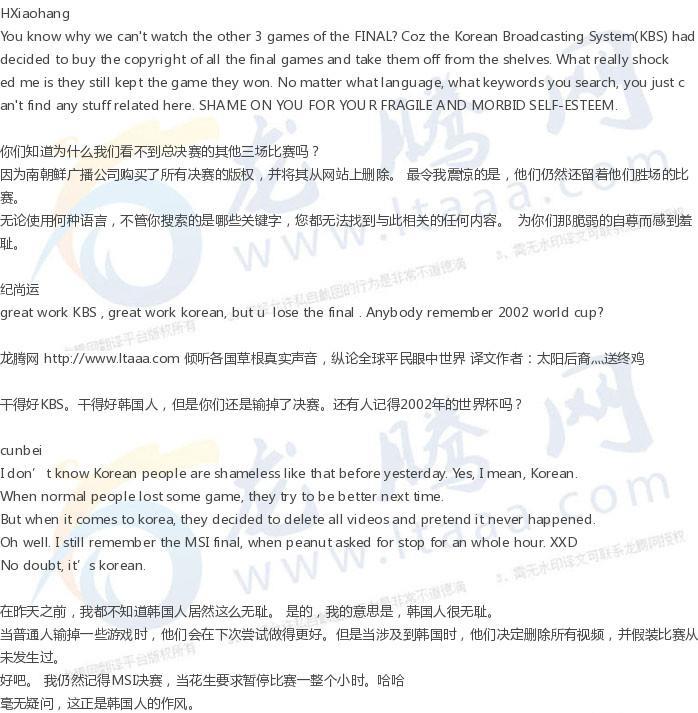 we korens also don't know why they're doing this with LOL. Never happened before with any other kind of sports don't even know what's going in the minds of KBS