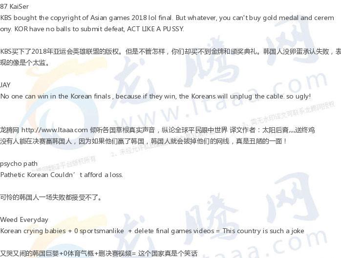 最近我还听说,韩国禁止了中国选手在韩服的账号。这种无耻的程度还是大大超出了我的意料。 韩国人的自大和狭隘还真是让我打开了新世界啊!