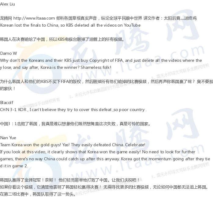 Can't koreans afford to lose? Why only let out the one game that won China .And they also took the scene of the victory of the Korean team group match to the finals video.