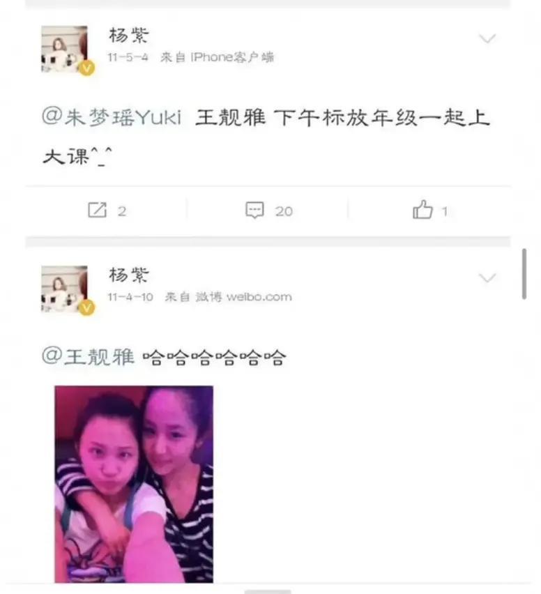 但是,更为复杂的是,王靓雅与当红小花杨紫竟是同窗好友。两人的关系十分亲密,杨紫甚至多次在社交平台上分享两人的合照。