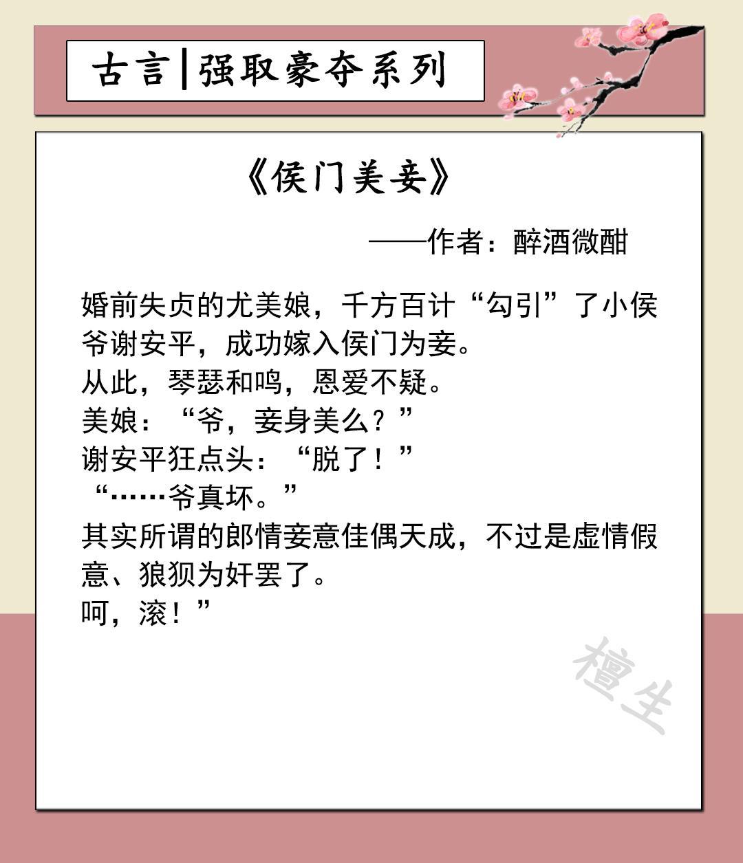 推六本强取豪夺文:娇弱女主被命运摆布,遇上了霸道不讲理的侯爷