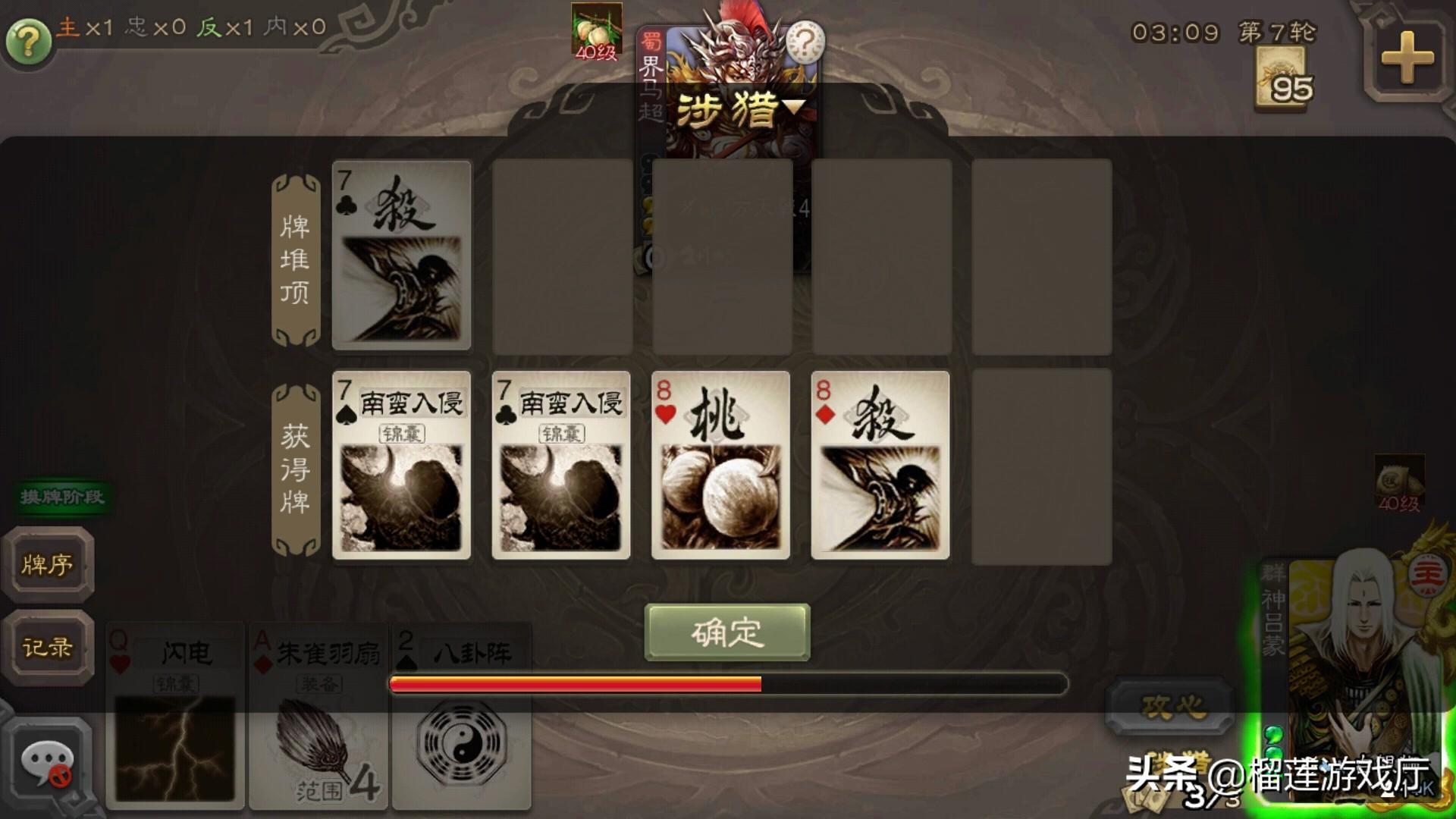 ①当农民,最重要的是前期要苟起来,只要前期苟住了,后期和队友配合非常好打地主。神吕蒙的嘲讽非常高,开局的话,一桃一闪是标配。下面针对热门地主,榴莲给大家带来打发解析: