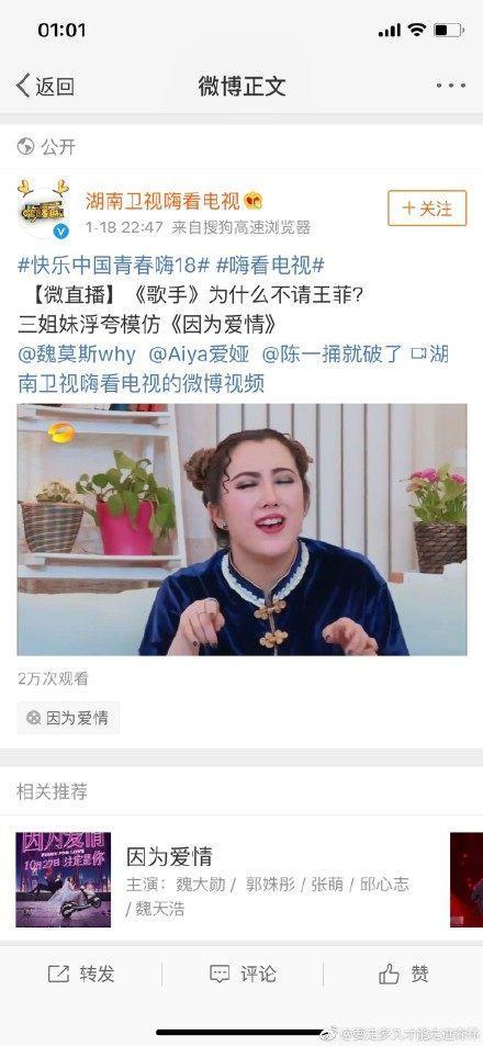 按说,其实这些年,王菲被各种唱过节目“消费”也不是一次两次了,凡是唱歌比赛,必然有选手要唱王菲的歌。某蒙面猜歌手的节目,“不会是王菲来了吧”这句话每季必提,但这么被电视台大张旗鼓的“恶意消费”还是第一次,如果这次不是因为王菲被刷上了热搜,想必还真没几个人听过《嗨看电视》这个节目,所以王菲确实很好用啊!