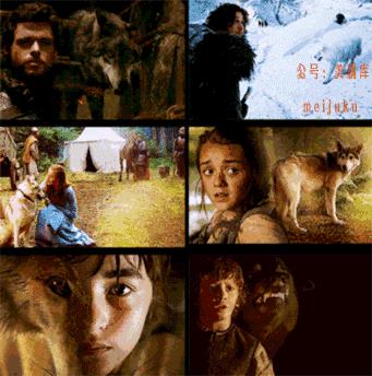 狼与主人之间彼此有灵性与连结,这部分在原著小说中是非常重要的一环,几乎和「丹妮莉丝坦格利安」与龙的连结一样,而冰原狼甚至象征了各自角色与史塔克家族的命运。