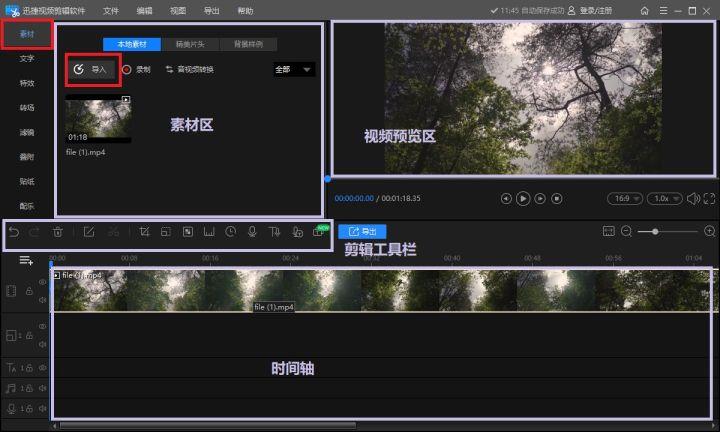 软件兼具了视频剪辑的专业性以及简易性,对新手很友好,视频剪辑页面也是一目了然。