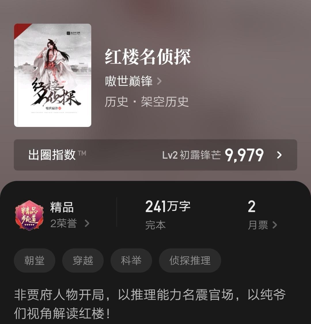 此书非贾府人物开局,以破案能力名震红楼,以纯爷们视角解读红楼!作者文笔娴熟,节奏紧凑,老司机一名,开车技术一流,纯洁少年慎入!