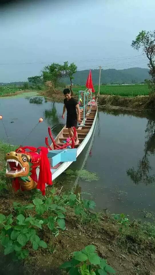 龙舟上有34个划手,1个鼓手,1个锣手,1个舵手,船上的编制大概就是这样,岸上还有一些替补划手。龙舟刚下水的头两天,基本都是试水,还有礼节,节日礼物的收取(家乡称为挂红),礼节是这样的,本村嫁出去的姑娘,不管是年轻的还是年长的,一般都送上红包或者一条香烟,羽绒被,配上烟花爆竹燃放,还有和本村有亲戚关系或者要好的朋友的,也会送上,还有街道的商人们。我们龙舟也会对这些人进行“回礼”。这样回的,锣鼓喧天的把龙舟高速划起来,然后调个头把龙头对着“客人”们,这个“回礼”称之为龙摆尾,祝福着“客人”们。