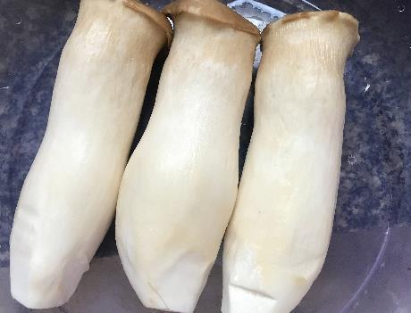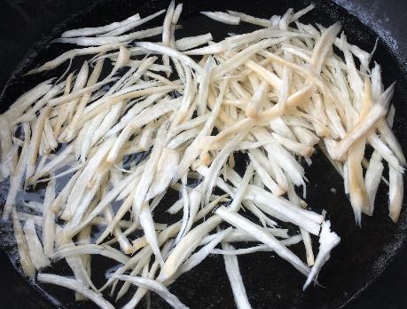 制作过程:第一步,首先将杏鲍菇清洗干净后,切成比较细点的丝;