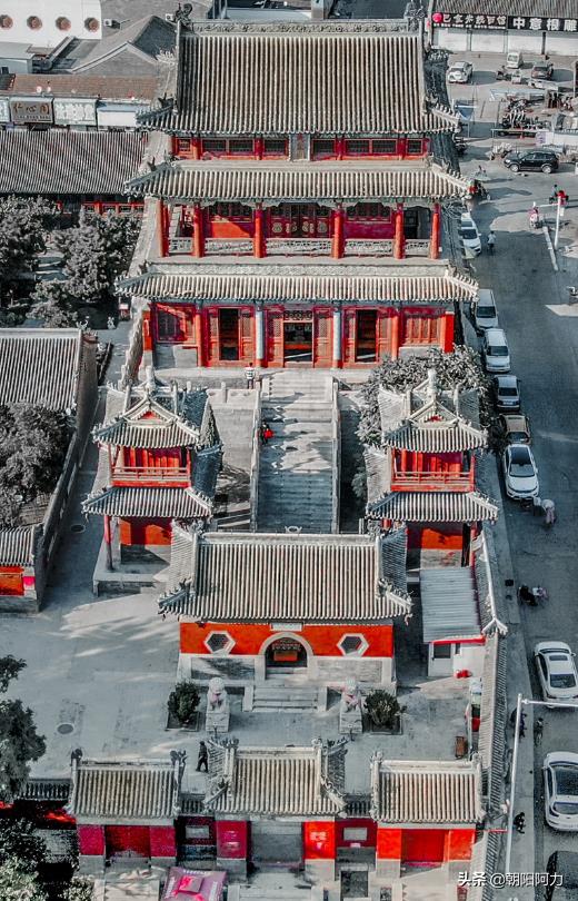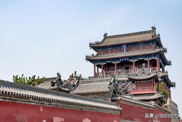大慈阁大慈阁通高31米,阁前是22级台阶,移目阁内,观音菩萨矗立于莲瓣须弥座上,神态安然。观音像为木雕,高5.5米,42支手臂持各种法器。阁内两侧有壁画十八罗汉及经变故事,为清末作品,尚清晰可见,神态各异,是阁内艺术珍品。二、三层皆面阔三间,进深一大间,阁内藻井、檩枋均绘旋子彩绘,四周作围廊,依栏鸟瞰,市井民宅历历在目。登上三层,凭窗极目,西部群山隐隐诸峰,尽收眼底。