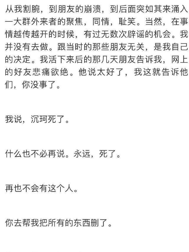 而当时的沉珂,自残的行为引得很多年轻人去效仿,造成了社会上一段时间的颓废和萎靡。