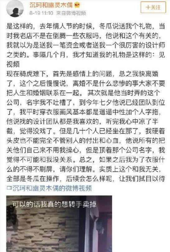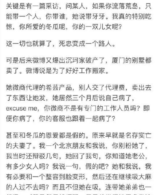 还有人说,沉珂就算离了婚孩子也不会跟她,因为她网店开不起来,做事做不好,如今还想通过离婚这个风头来卖惨。