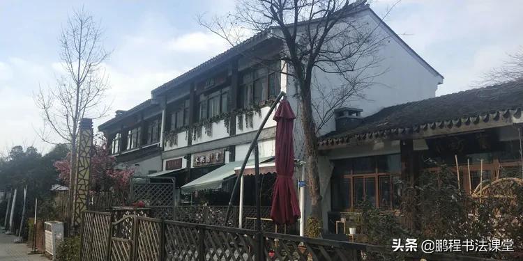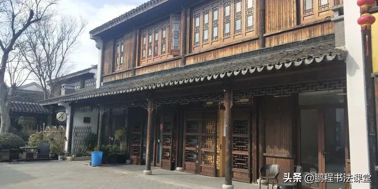 邻水曲折的回廊、上翘的檐角、深色实木与石板街相映成辉。