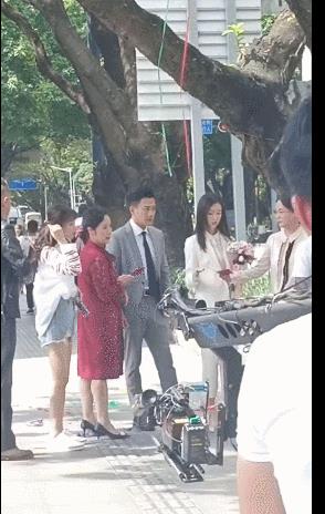 从当天网友曝光的刘恺威与陈都灵两人拍戏的现场视频来看,视频中,刘恺威身着灰色小西装,打着精致领带,白色的衬衫,相当帅气有型。只见刘恺威一手拿着红色的结婚证,一手搂住一旁同拿结婚证的陈都灵,两人脸上都洋溢着幸福的笑容。