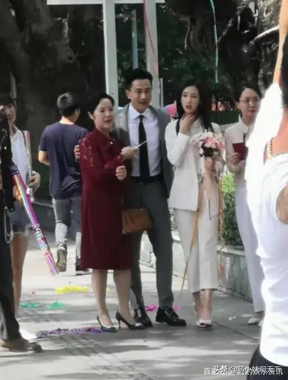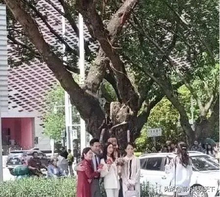 而当天作为“新娘”的陈都灵则是身穿一身纯白色的小西装套装,手中拿着红色结婚证和一束鲜花,除了这对“新人”之外,两人身边还有一众好友和饰演两人“父母”的演员,在二人领完结婚证后还一家人进行了合影,画面看起来温馨又热闹。