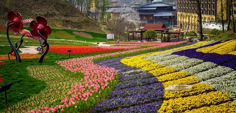 英山四季花海位于毕昇故里——英山县,是国家4A级旅游景区,中国最美乡村旅游目的地。景区分为花卉观光区、温泉养生区、体验游乐区、红色旅游区和康养度假区。
